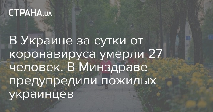 В Украине за сутки от коронавируса умерли 27 человек. Из-за такого количества летальных случаев в Минздраве напомнили лицам из группы риска о необходимости соблюдать все меры предосторожности, так как беспечность может стоить им жизни.