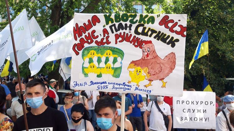 Участники акции требуют прекратить давление силовых органов на "Укрлендфарминг". По их словам, преследование связано с личными мотивами Артёма Сытника, который пытается уничтожить предприятие.