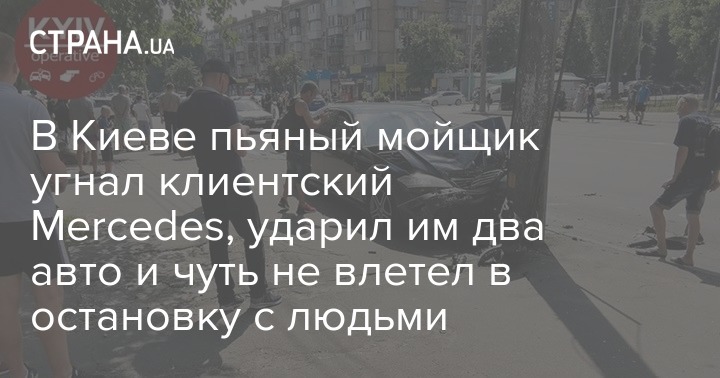В Киеве пьяный мойщик угнал клиентский Mercedes, ударил им два авто и чуть не влетел в остановку с людьми