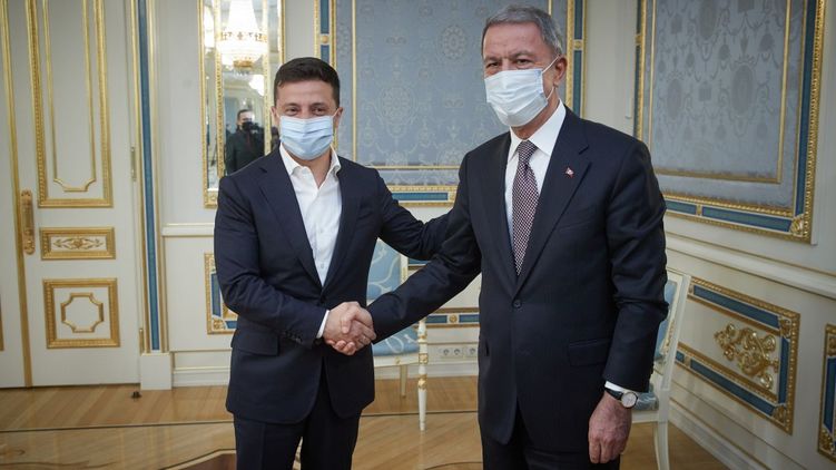 Президент Украины Владимир Зеленский встретился с министром обороны Турции Хулуси Акаром, который посетил Украину с рабочим визитом. Они обсудили строительство квартир для крымских татар, экономическое сотрудничество и взаимодействие в военной сфере.