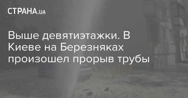 В субботу, 11 июля, в киевском микрорайоне Березняки произошел прорыв трубы. Струя холодной воды достигала верхнего этажа девятиэтажного дома.