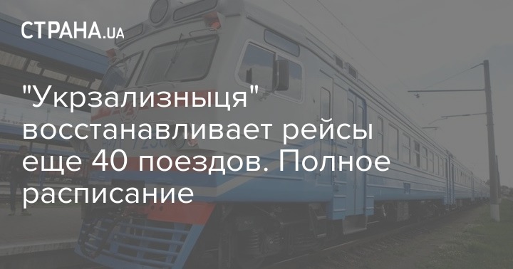 "Укрзализныця" заявила о возобновлении рейсов 40 поездов почти во всех областях Украины. Новые составы вернутся к работе в начале следующей недели.