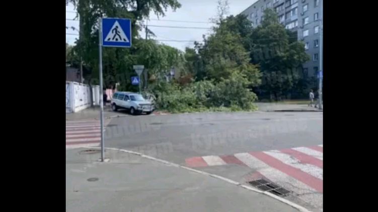 А за несколько дней до случая с девушкой на Троещине огромное дерево упало на припаркованный автомобиль.