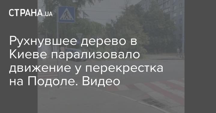 Рухнувшее дерево в Киеве парализовало движение у перекрестка на Подоле. Видео
