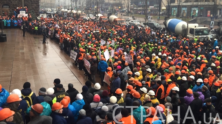 Строители против "титушек": под КГГА подвезли бетономешалки (видео)
