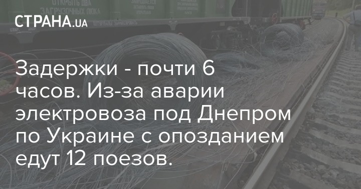 По данным "Укрзализныци", из-за этой аварии 12 пассажирских поездов будут прибывать с опозданием.  По состоянию на 10:00 опоздание поездов составляло в среднем более двух часов: Ужгород – Запорожье 139 минут; Киев – Днепр 226 минут; Бердянск – Киев 341 минут. А вот Одесса – Днепр задержался на 116 минут.