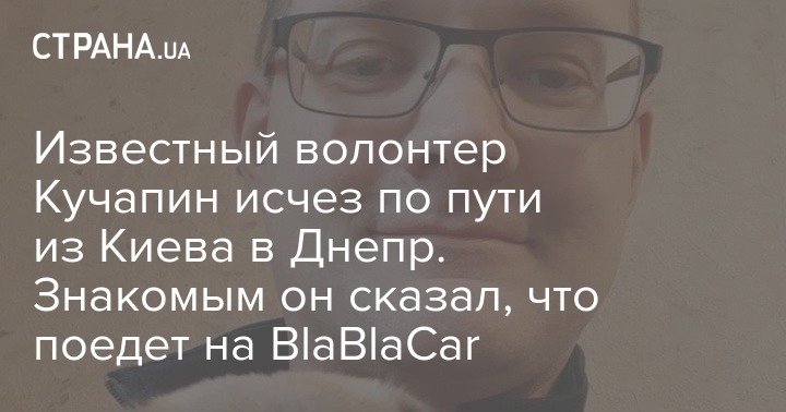 В Киеве пропал без вести руководитель общественной организации "Дом милосердия" 40-летний Алексей Кучапин. Последний раз на связь он выходил 16 июля: тогда он рассказал, что едет из столицы в Днепр и намерен воспользоваться сервисом BlaBlaCar.