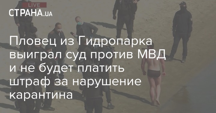 Днепровский райсуд Киева оправдал пловца из Гидропарка Валентина Бурьянова, который 6 апреля во время жесткого карантина пытался вплавь добраться до тренажеров Гидропарка.