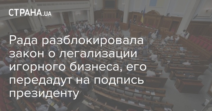Таким образом, закон о госрегулировании игорного бизнеса, принятый 14 июля, разблокирован и может быть подписан спикером парламента Дмитрием Разумковым, после чего передан на подпись президенту Владимиру Зеленскому.