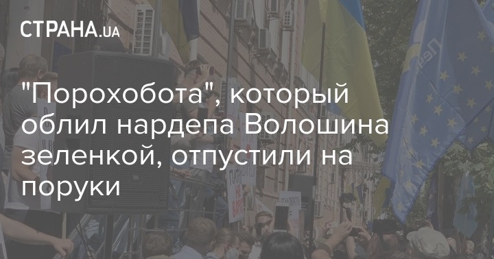 "Страна" сообщала о том, что утром 23 июля в Киеве у суда представители Нацкорпуса и сторонники Порошенко собирались в поддержку "порохобота", облившего зеленкой нардепа Волошина.