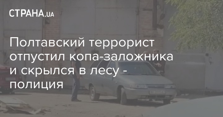 Полтавский террорист Роман Скрипник, который взял в заложники полицейского, и требующий, чтобы его не арестовали за угон автомобиля, отпустил копа. Он бросил машину посреди дороги и скрылся в лесопосадке. Полицейский, которого взяли в заложники, невредим.
