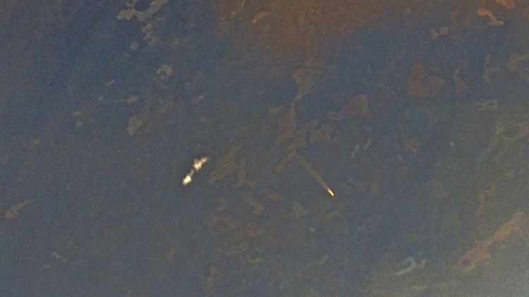Российский космонавт Иван Вагнер, который сейчас находится на МКС, снял запуск с борта станции и выложил фото в своей Twitter.