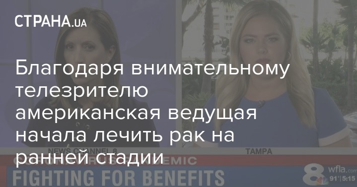 Американская телеведущая канала WFLA Виктория Прайс обнаружила у себя рак на ранней стадии и смогла начать лечение благодаря внимательному зрителю. Он написал ей об уплотнении на шее и посоветовал провериться у врача.