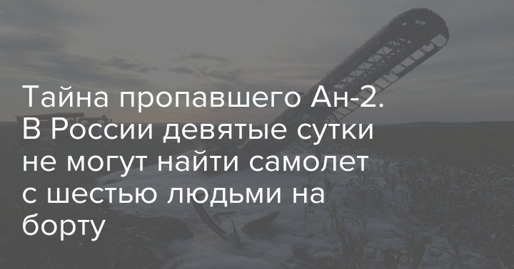 Тайна пропавшего Ан-2. В России девятые сутки не могут найти самолет с шестью людьми на борту