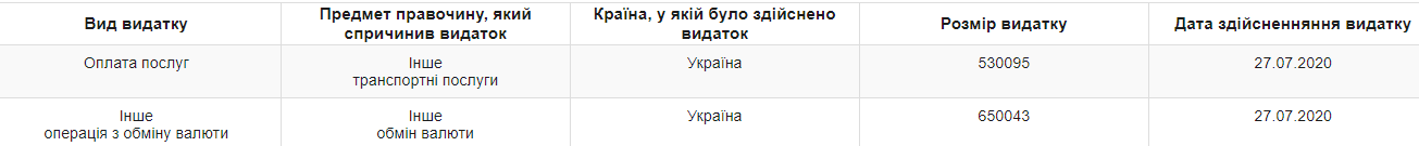 Вечером того же дня на сайте электронных деклараций, Петр Порошенко указал расходы почти на 1,2 млн рн. Из них 530 095 - оплата транспортных услуг. Еще 650 043 грн - операция по обмену валюты.