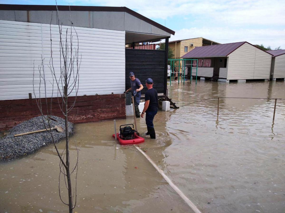 Спасатели аварийно-спасательного отряда спецназначения из пгт Семеновка с помощью пяти плавающих мотопомп откачивали воду на территориях баз. По состоянию на 16:00 всего было откачано более 50 м3 воды.
