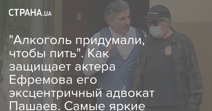 Пашаев отрицал алкоголизм подзащитного, объясняя, что сыграть такие роли алкоголик не сможет. И что Ефремов не виноват в том, что пил, поскольку все пьют, а водку придумал не он.