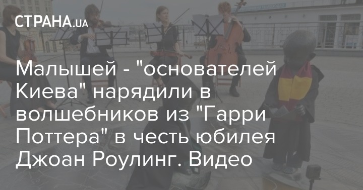 В Киеве на Почтовой площади в честь дня рождения популярной английской писательницы Джоан Роулинг, которой принадлежит серия романов про "Гарри Поттера", приодели статуи малышей - "основателей Киева". Кий, Щек и Хорив превратились в маленьких волшебников из книг.