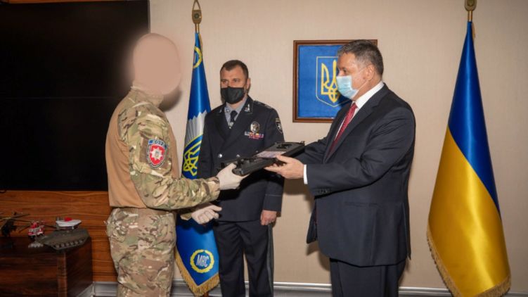 Глава МВД Арсен Аваков вручил наградное оружие четырем правоохранителям, которые участвовали в спецоперации по задержанию и обезвреживанию "полтавского террориста" Романа Скрипника