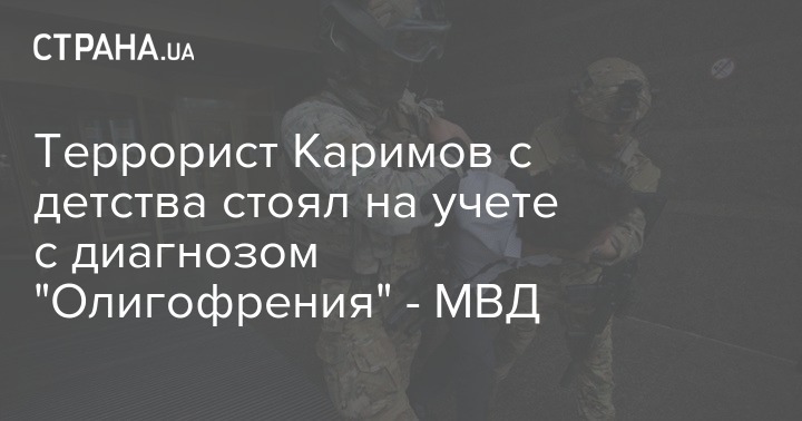 Заместитель главы МВД Антон Геращенко заявил, что киевский террорист Сухроб Каримов состоял на учете в психоневрологическом центре. Медики поставили ему диагноз "Олигофрения".