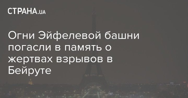 Главная достопримечательность Парижа погасла в полночь в память о жертвах взрывов в ливанской столице. Фото: Twitter/ Anne_Hidalgo
