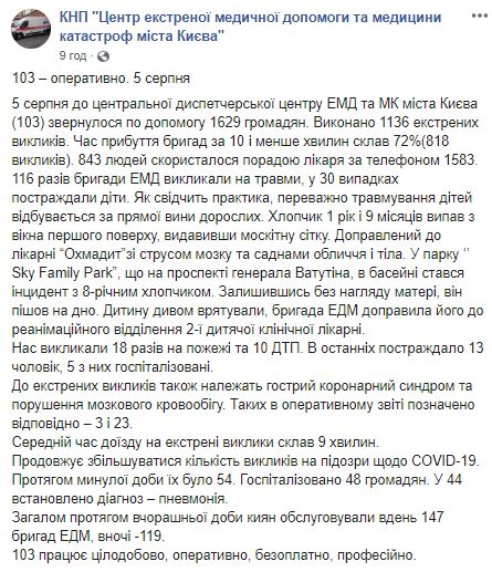 О гибели мальчика сообщает Центр экстренной медицинской помощи и медицины катастроф города Киева.