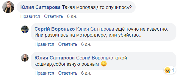В соцсетях пишут, что тело нашли на окраине леса. Рядом с ней лежал мопед, на котором она разбилась насмерть. Сообщается, что Валерия боялась подобного транспорта и не умела им управлять. Вероятно, она была пассажиркой, а водитель сбежал с места происшествия.