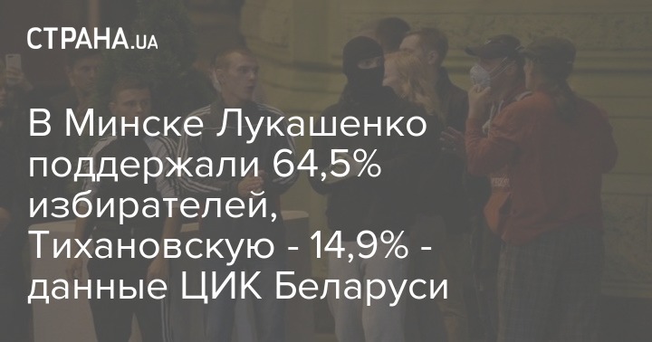 В Минске Лукашенко поддержали 64,5% избирателей, Тихановскую - 14,9% - данные ЦИК Беларуси