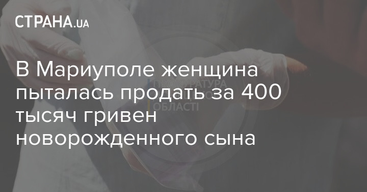 Правоохранители Донецкой области расследует дело 19-летней безработной жительницы Мариуполя, пытавшейся продать за 400 000 гривен собственного новорожденного ребенка. Он появился на свет пять дней назад.
