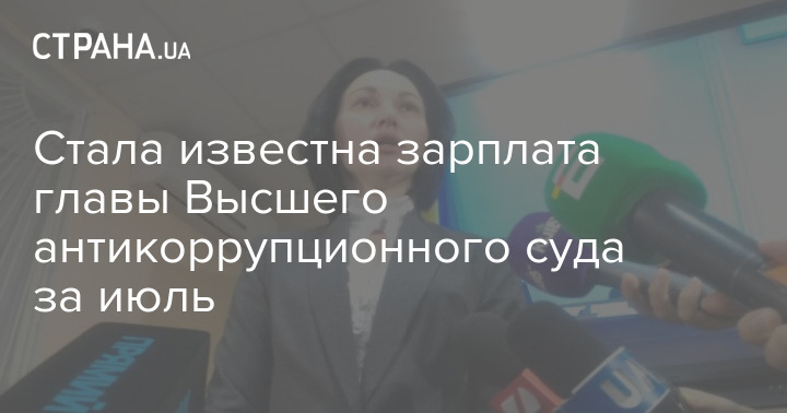 Глава Высшего антикоррупционного суда Украины (ВАКС) Елена Танасевич в июле получила зарплату в размере 54 464,95 гривен.