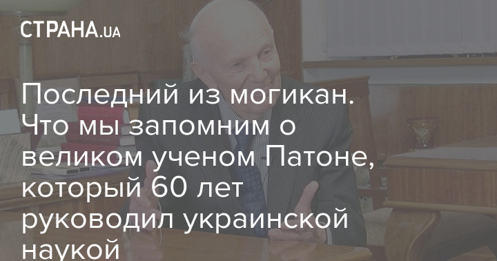 "Украинская наука понесла большую потерю! На 102 году жизни скончался выдающийся украинский ученый Борис Патон.