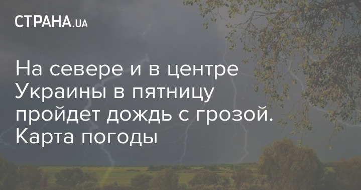 На севере и в центре Украины в пятницу пройдет дождь с грозой. Карта погоды