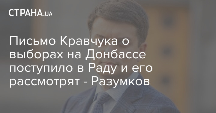 Спикер Верховной Рады Дмитрий Разумков во время выступления после церемонии поднятия фага Украины заявил, что парламент получил письмо председателя украинской делегации в ТКГ в Минске Леонида Кравчука относительно выборов на Донбассе. Его направили в комитеты для изучения.