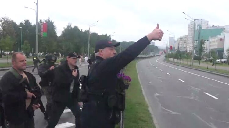 Президент Беларуси Александр Лукашенко вышел за оцепление Дворца независимости и поблагодарил силовиков, которые охраняли его резиденцию, пообещав "разобраться" с протестующими.