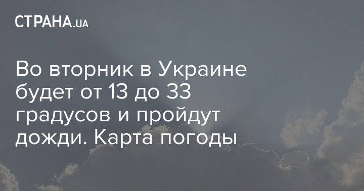 Во вторник в Украине будет от 13 до 33 градусов и пройдут дожди. Карта погоды