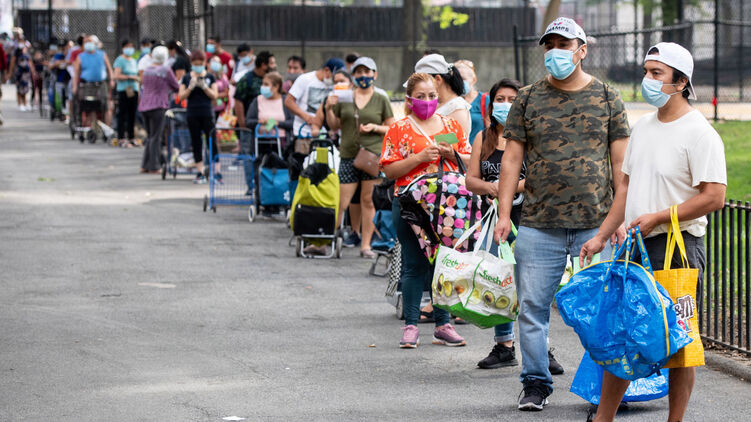 В Квинсе (район Нью-Йорка - Ред.) в субботу, 22 августа, в полукилометровую очередь за бесплатной едой, выстроились люди которые остались без работы из-за пандемии коронавируса.