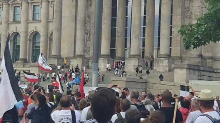 Президент Германии Франк-Вальтер Штайнмайер раскритиковал действия демонстрантов, которые вчера вечером, 29 августа, после акции протеста забрались на ступени здания Рейхстага.