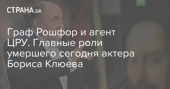 В Москве в возрасте 76 умер актер Борис Клюев, сыгравший в фильмах "Д’Артаньян и три мушкетера", "Приключения Шерлока Холмса и доктор Ватсона", сериалах "ТАСС уполномочен заявить", "Воронины".