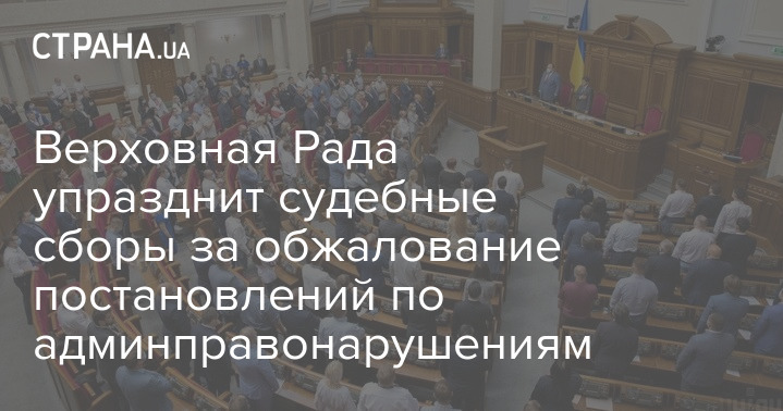 Верховная Рада упразднит судебные сборы за обжалование постановлений по админправонарушениям