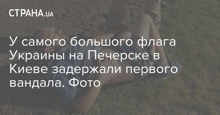 У самого большого флага Украины на Печерске в Киеве задержали первого вандала. Фото