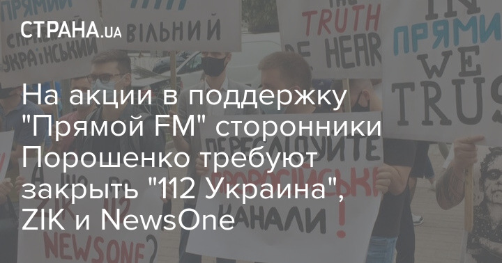 На акции в поддержку "Прямой FM" сторонники Порошенко требуют закрыть "112 Украина", ZIK и NewsOne