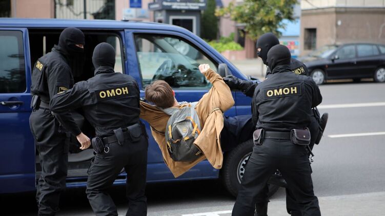 Сотрудники МВД Беларуси задерживают протестующего. Фото: Twitter