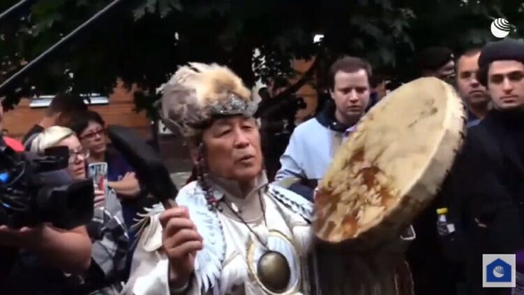 Шаманы под зданием суда над Ефремовым. Скриншот YouTube