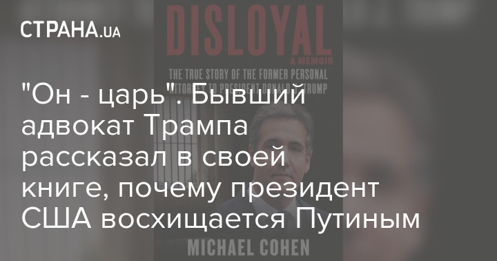 "Он - царь". Бывший адвокат Трампа рассказал в своей книге, почему президент США восхищается Путиным