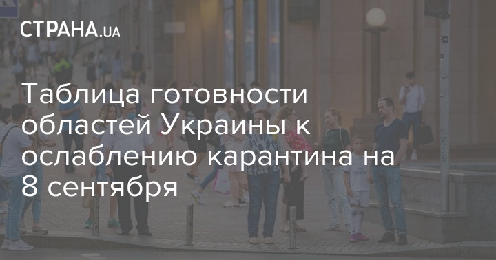 По состоянию на 8 сентября Киев и 17 регионов Украины не готовы к ослаблению карантина из-за высоких показателей заболеваемости коронавирусом.