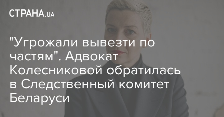В заявлении Колесникова указывает конкретные имена и должности людей, которые оказывали на нее психологическое давление. Она отметила, что может опознать всех и готова дать показания: "Высказывались угрозы лишить меня жизни, которые воспринимались мною реально. В частности, заявлялось, что в случае, если я добровольно не покину территорию Республики Беларусь, меня все равно вывезут: живой или по частям. Высказывались и угрозы лишить меня свободы на срок до 25 лет.