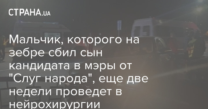 Среднетяжелым называют медики состояние 11-летнего мальчика, который 4 сентября в Кривом Роге на зебре попал под колеса авто, которым управлял сын кандидата от "Слуги народа" в мэры города Дмитрия Шевчика.