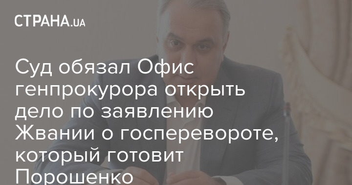 Печерский суд Киева обязал Офис генпрокурора возбудить дело о подготовке государственного переворота, о котором в одном из своих видеообращений рассказывал экс-депутат и бывший соратник Порошенко Давид Жвания. Также был установлен судебный контроль за исполнением данного решения.