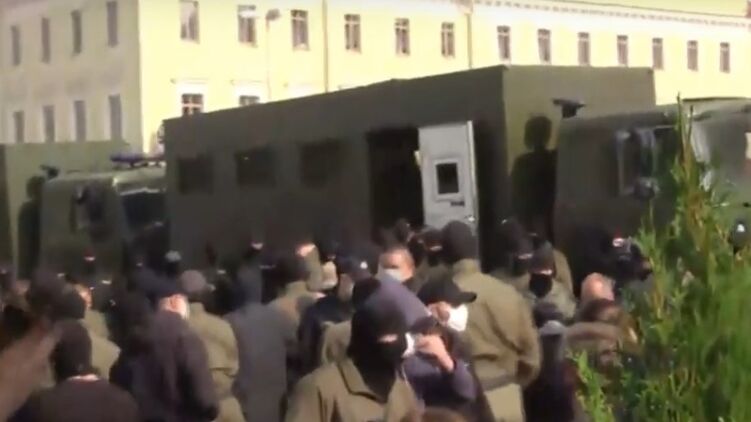 По словам очевидцев, силовики задержали трех мужчин на улице Маяковского. Они направлялись в сторону Площади Независимости, неся с собой национальные бело-красно-белые флаги.