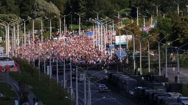 Протестующие в Минске проходят мимо резиденции президента Беларуси Александр Лукашенко и направляются к поселку "Дрозды", где проживает руководство республики.